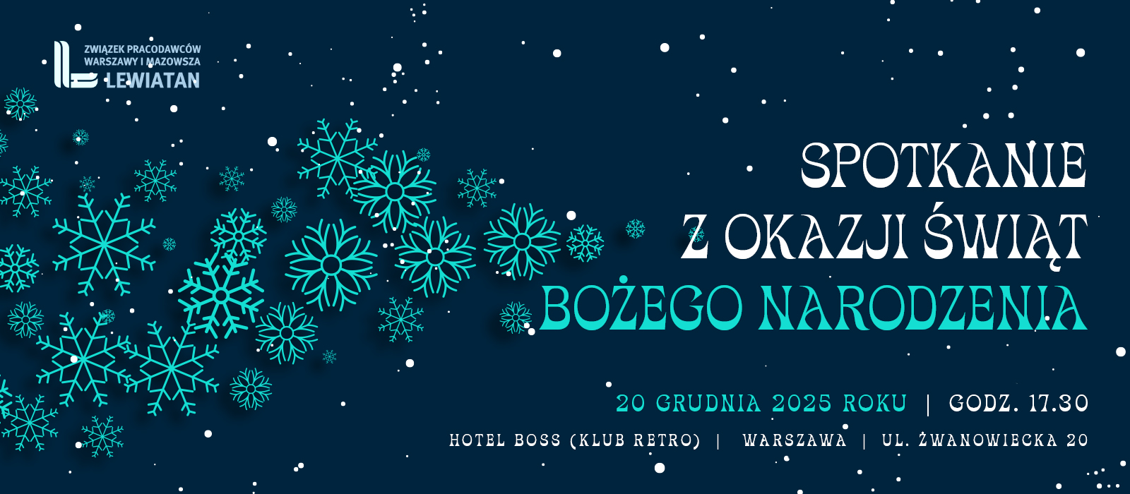 Związek Pracodawców Warszawy i Mazowsza Lewiatan serdecznie zaprasza Państwa na spotkanie z okazji Świąt Bożego Narodzenia,