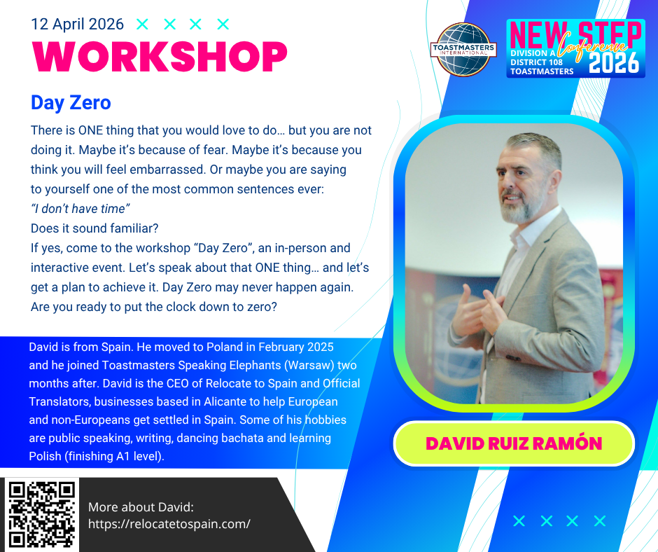 Konferencja Toastmasters Division A, "NEW STEP Conference" 2026 odbędzie się w formule dwudniowej i dwujęzycznej. The 2026 Toastmasters Division A conference "NEW STEP Conference" will be held in a two-day and bilingual format. Information in English is below.