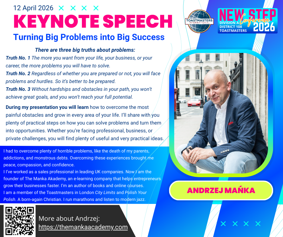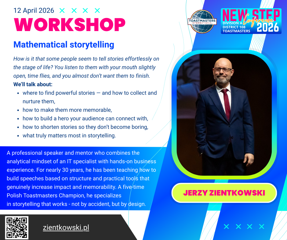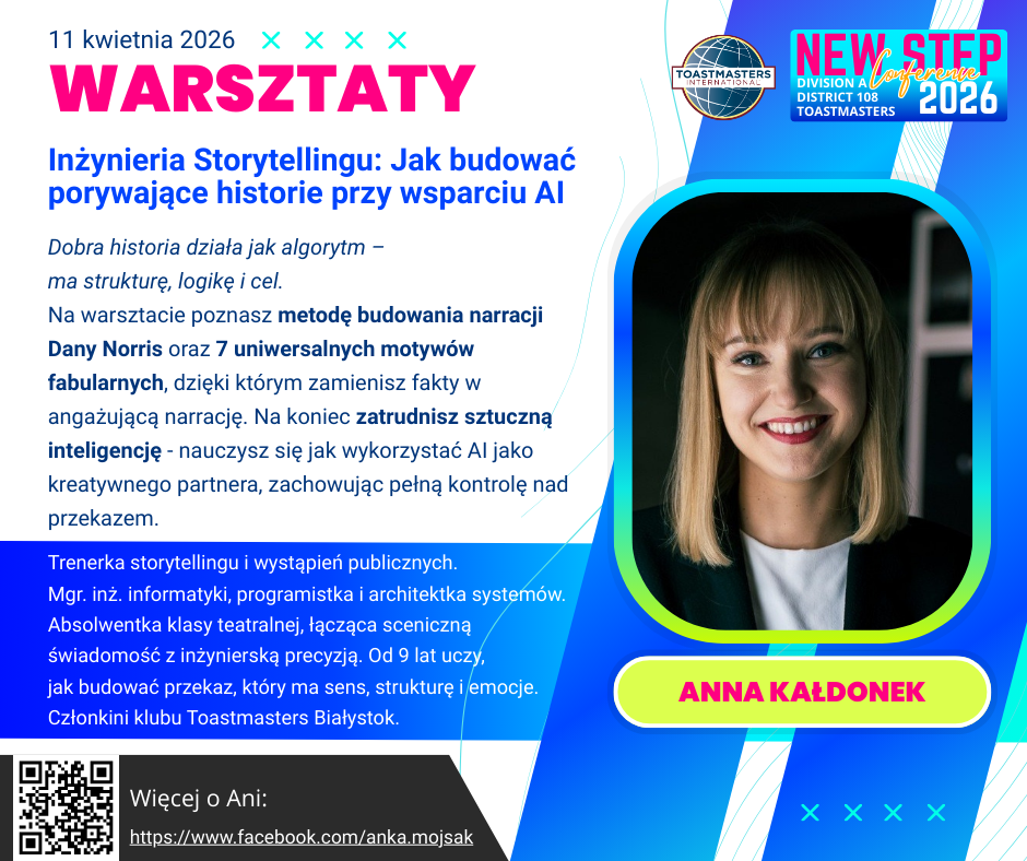Konferencja Toastmasters Division A, "NEW STEP Conference" 2026 odbędzie się w formule dwudniowej i dwujęzycznej. The 2026 Toastmasters Division A conference "NEW STEP Conference" will be held in a two-day and bilingual format.