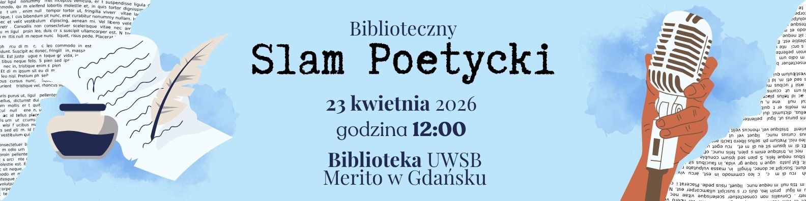 Zapraszamy wszystkich jako gości, a na zgłoszenia zaineresowanych uczestnictwem w potyczkach poetyckich czekamy osobiście w bibliotece, mailowo [email protected] lub przez facebooka Biblioteka Uniwersytetu WSB Merito w Gdańsku.