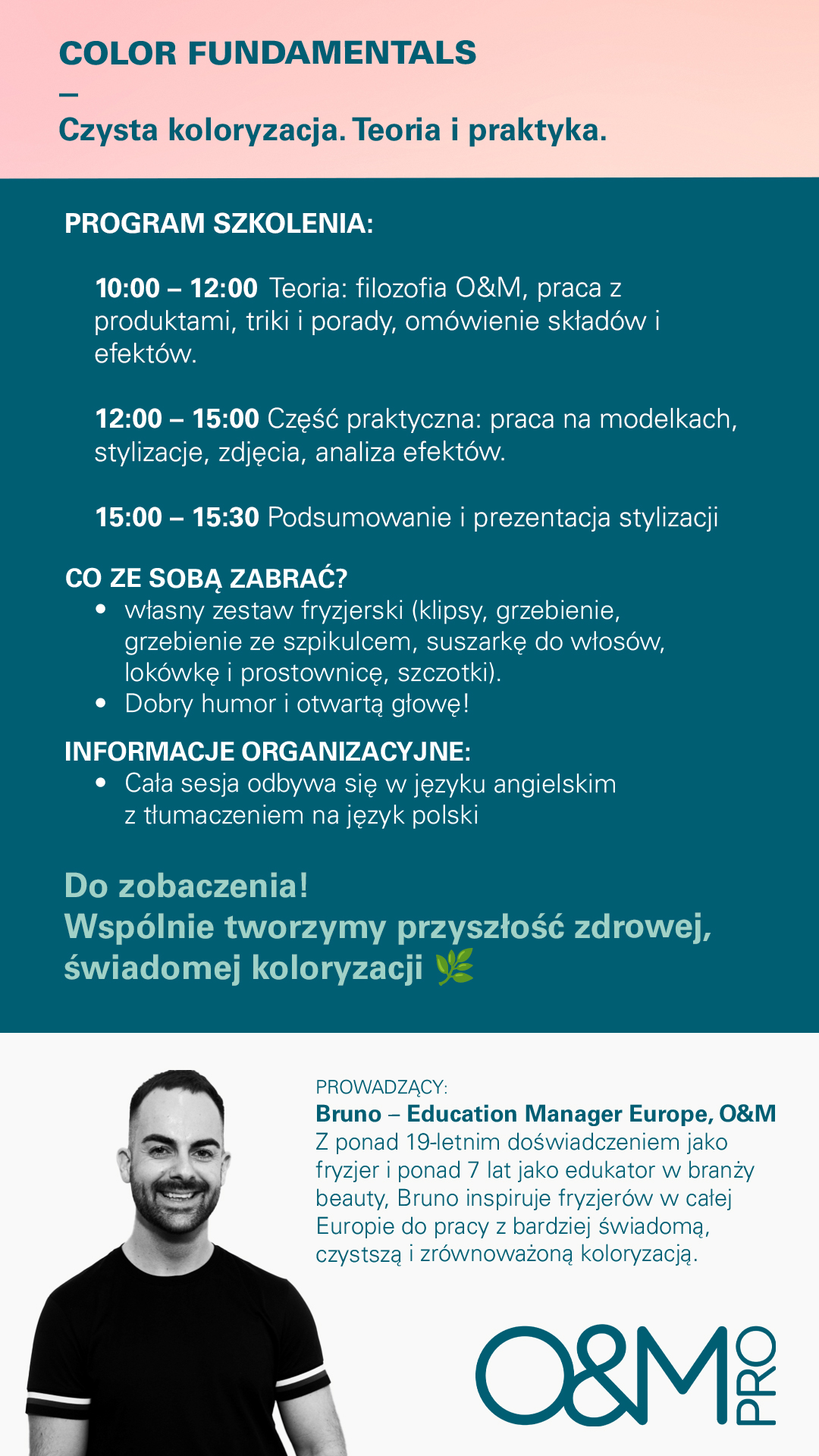 Szkolenie jest dedykowane fryzjerom, którzy chcą poznać innowacyjne podejście do koloryzacji i stylizacji włosów z marką O&M.