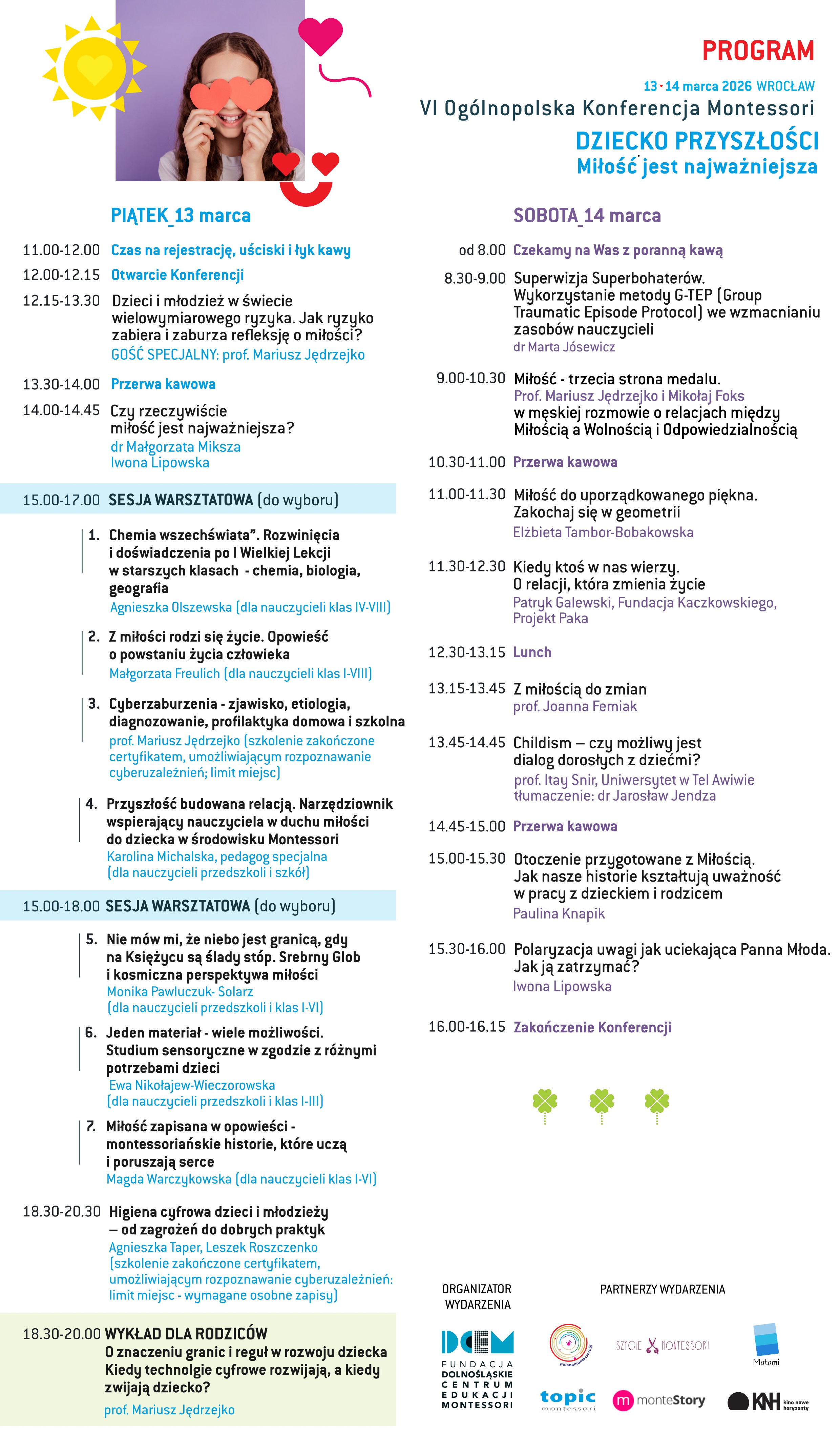 * Szkolenie wyłącznie dla Uczestników Konferencji Dziecko Przyszłości 2026. Organizator zastrzega sobie prawo weryfikacji osób zapisanych na szkolenie.