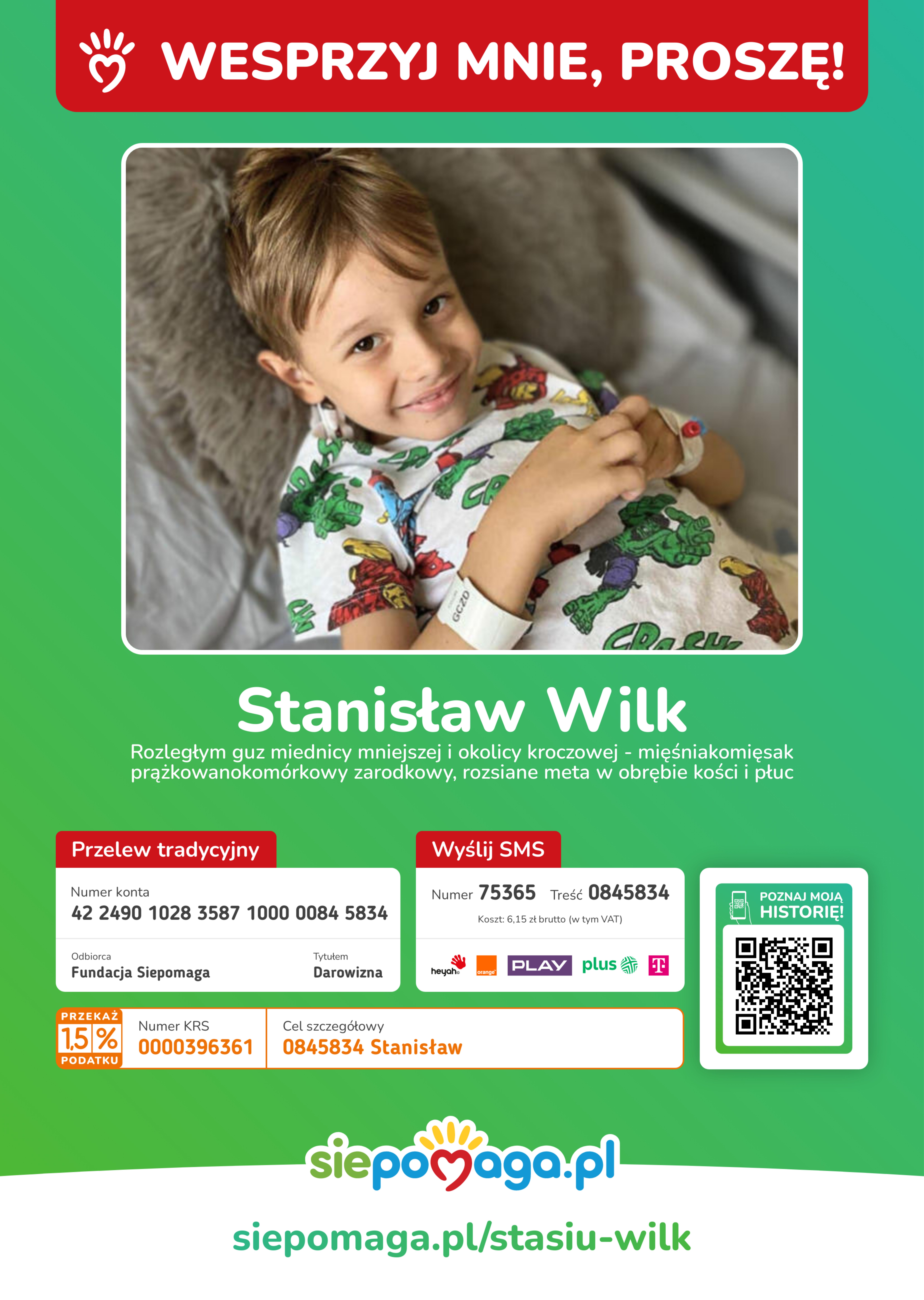 - można również przekazać dowolną darowiznę na rzecz Stasia Wilka z Raciborza w każdym momencie