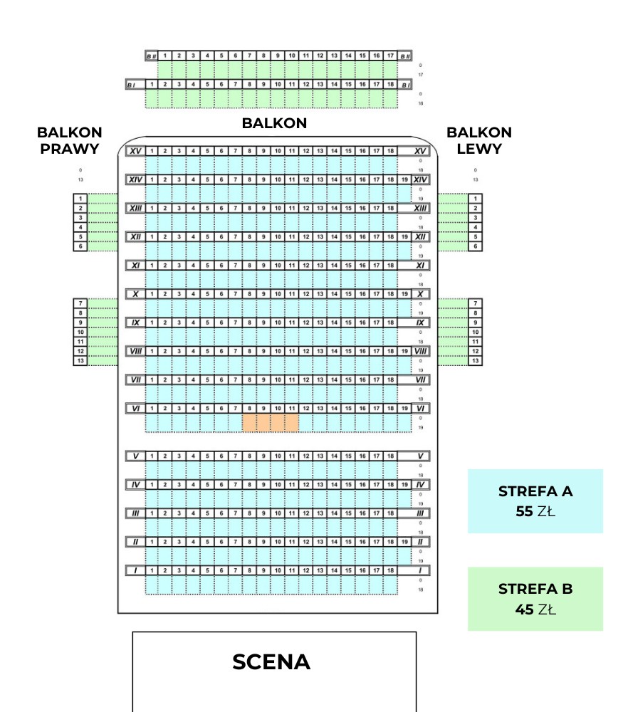 ROZKŁAD MIEJSC NA SALI WIDOWISKOWEJ Z PODZIAŁEM NA STREFY