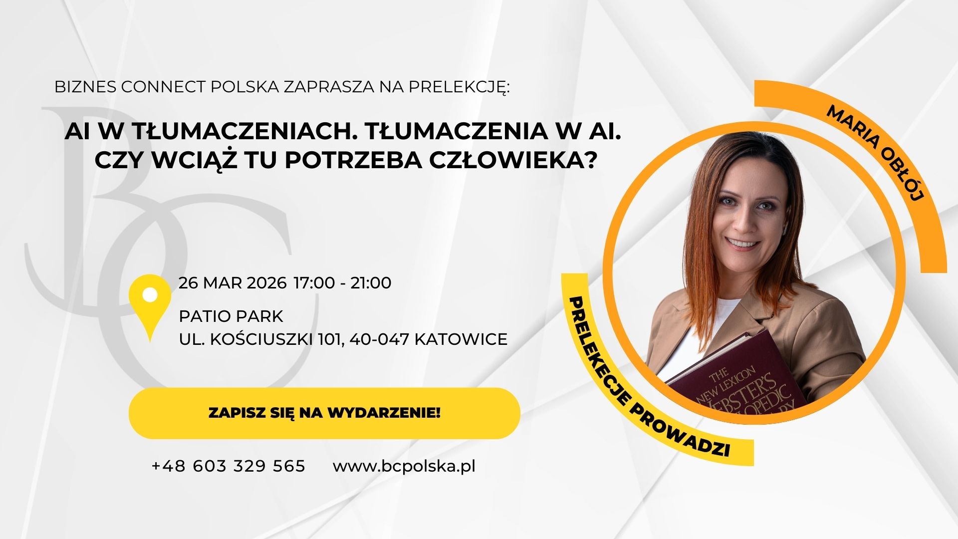 Biznes Connect Polska zaprasza na wiosenne wydarzenie networkingowe połączone z inspirującą prelekcją. Tym razem przyjrzymy się jednemu z najbardziej aktualnych tematów w świecie biznesu i komunikacji - roli sztucznej inteligencji w tłumaczeniach.