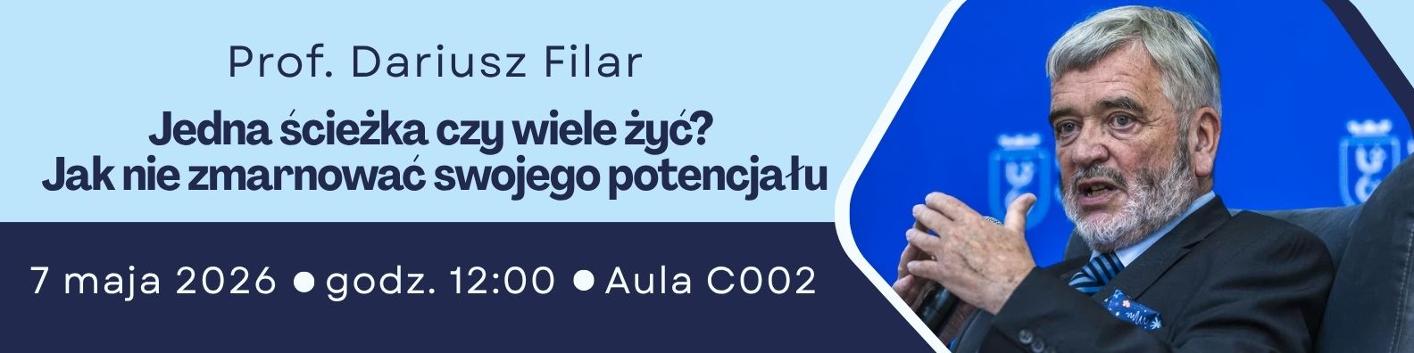 Tematem spotkania będzie inspirujące wystąpienie pt. Jedna ścieżka czy wiele żyć? Jak nie zmarnować swojego potencjału, poświęcone świadomemu kształtowaniu swojej drogi zawodowej i osobistej, poszukiwaniu własnych możliwości oraz efektywnemu wykorzystywaniu talentów w zmieniającym się świecie. Wykład będzie doskonałą okazją do refleksji nad własnym rozwojem, a także do wysłuchania perspektywy doświadczonego ekonomisty i komentatora życia publicznego. Po wystąpieniu przewidziana jest możliwość zadawania pytań i krótkiej dyskusji.