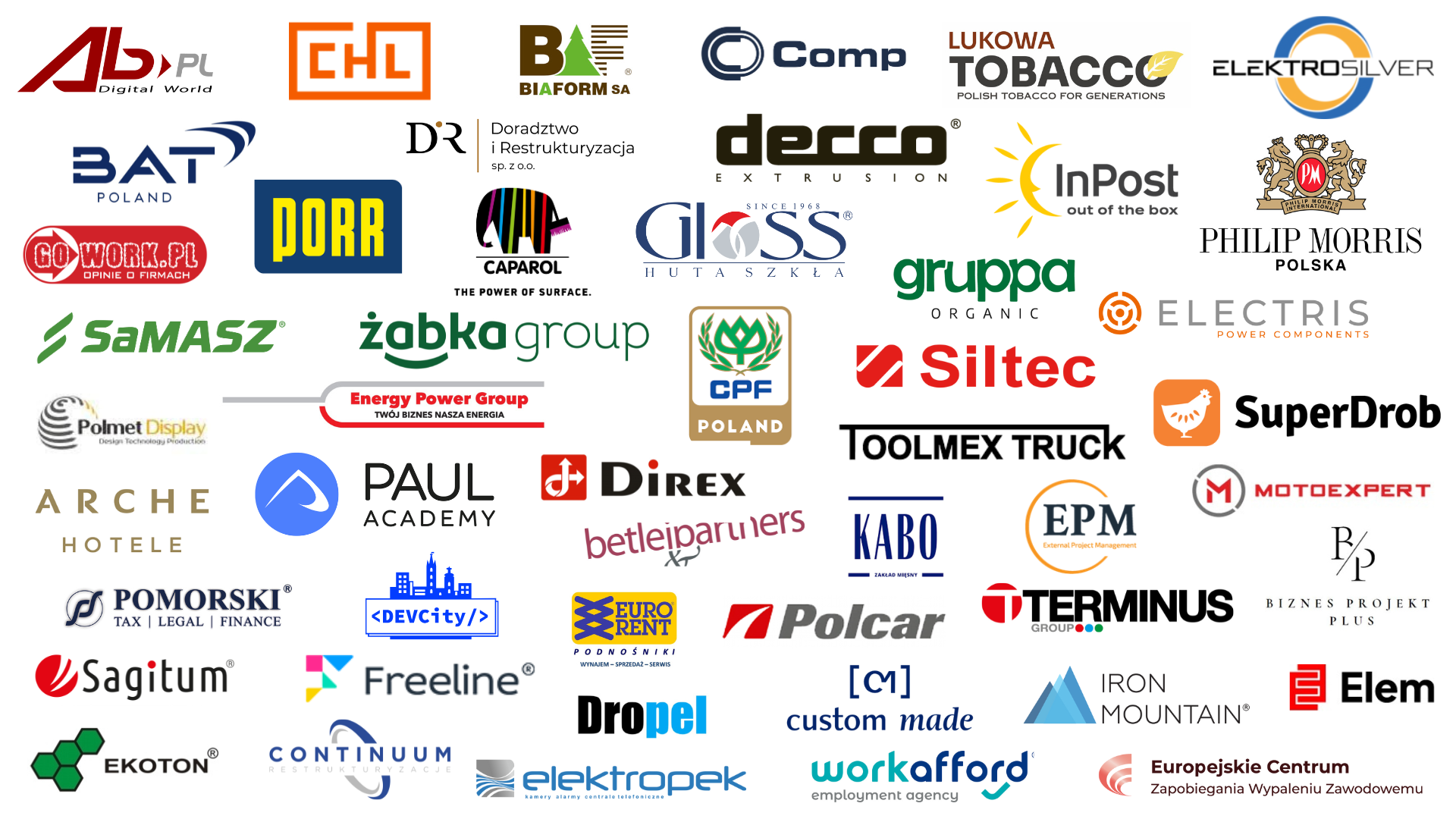 Logotypy części firm członkowskich PTG: