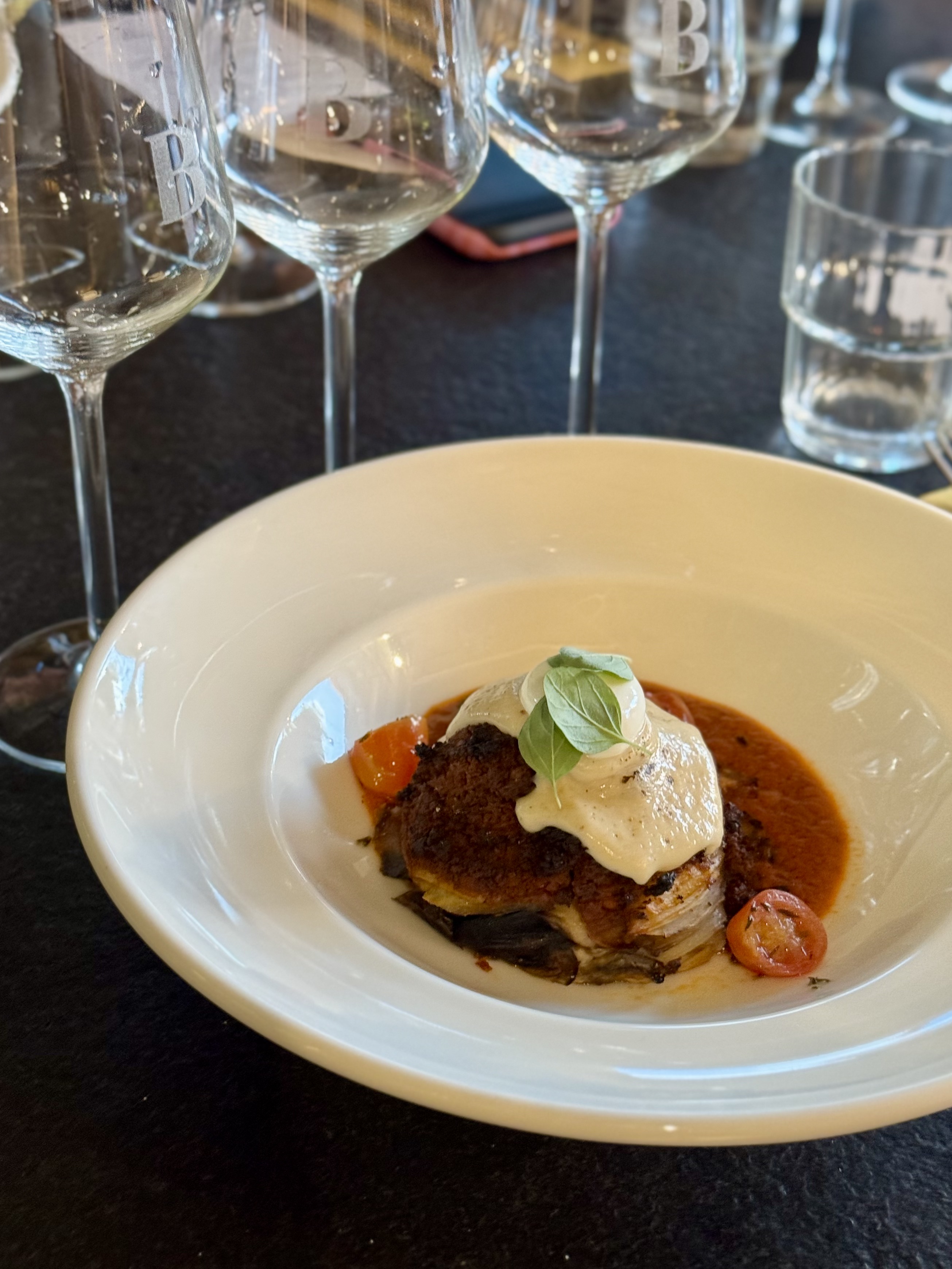 Wine pairing: Calmel & Joseph Amstramgram, Francja - złożone i eleganckie, dojrzewające na osadzie, z subtelną ziołową nutą.