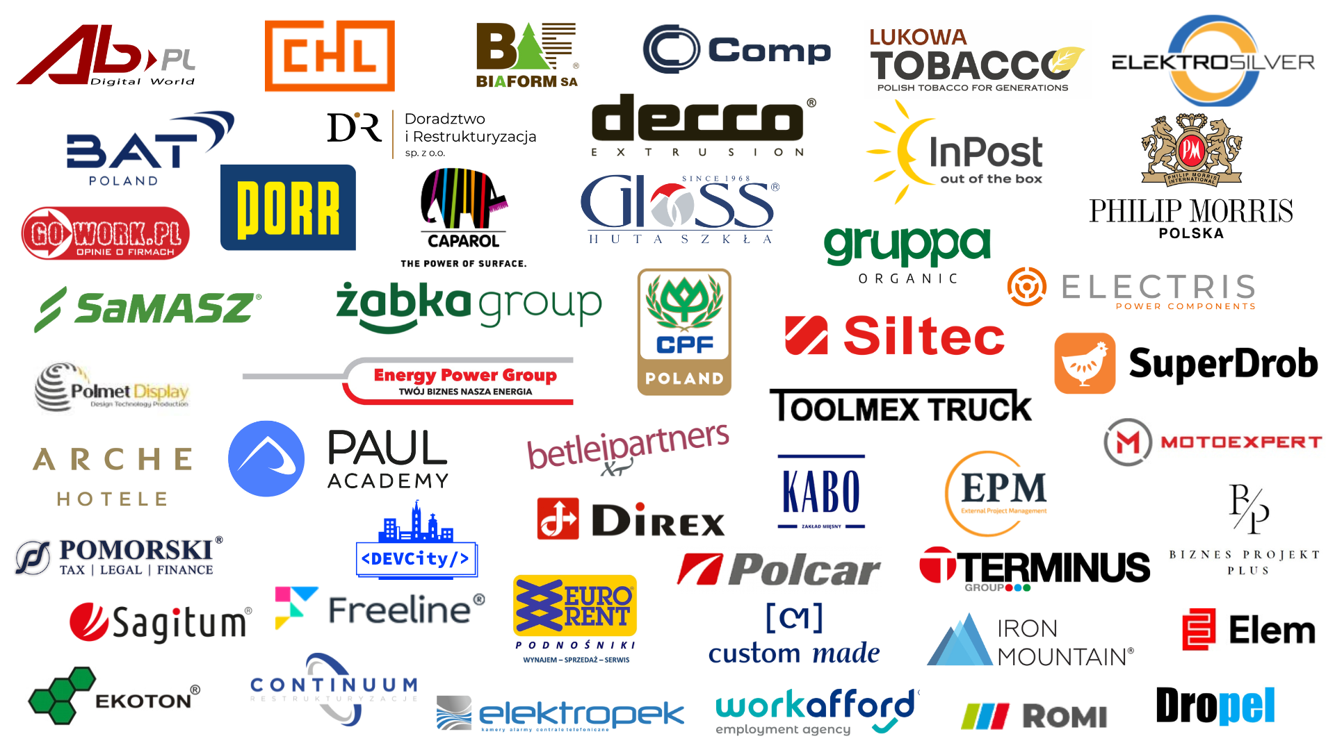 Logotypy części firm członkowskich PTG: