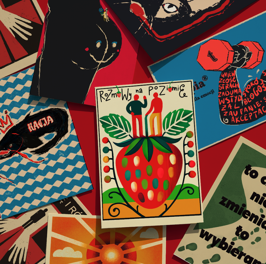 Na stoisku dostępne znajdziecie autorskie plakaty w formatach 50x70 i 30x40, pocztówki i neuroatypowe przypinki.