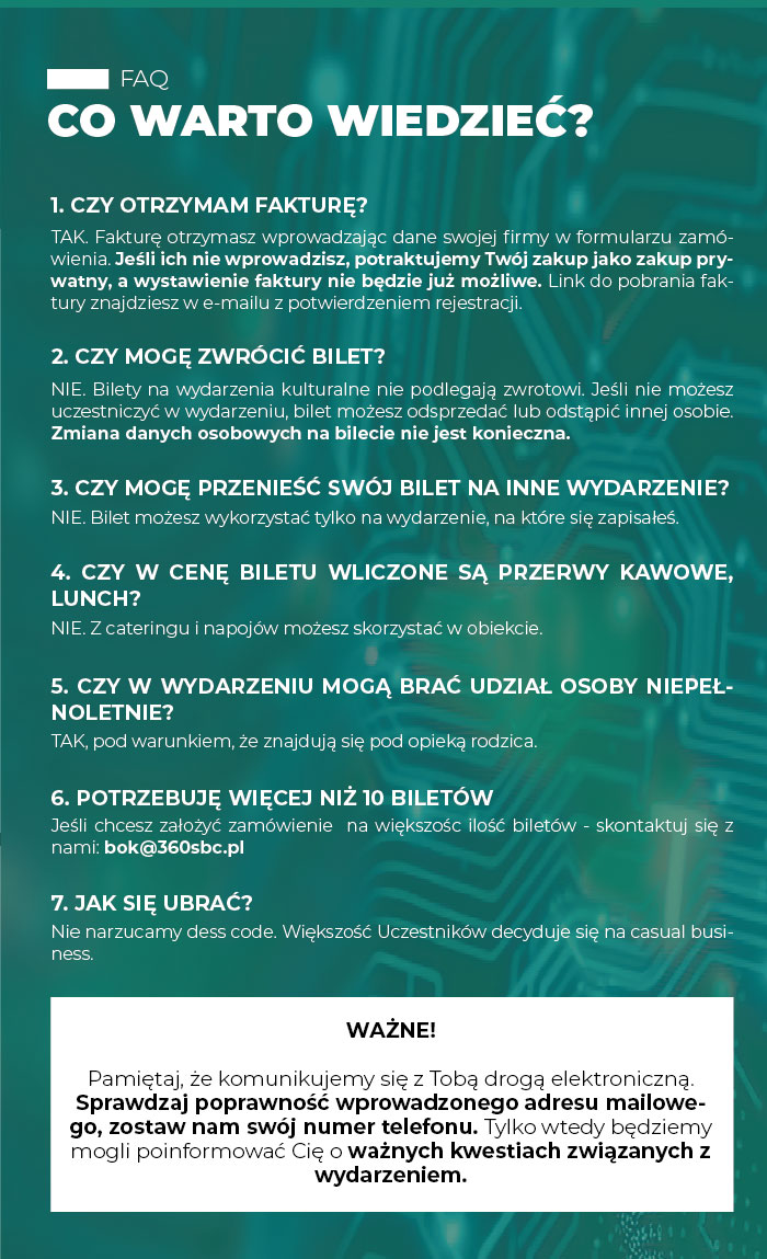 UWAGA: w cenę biletu nie są wliczone przerwy kawowe, catering