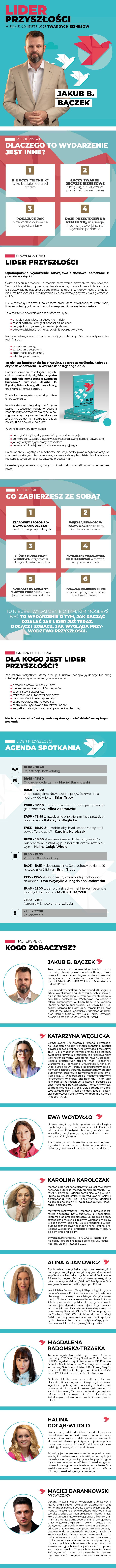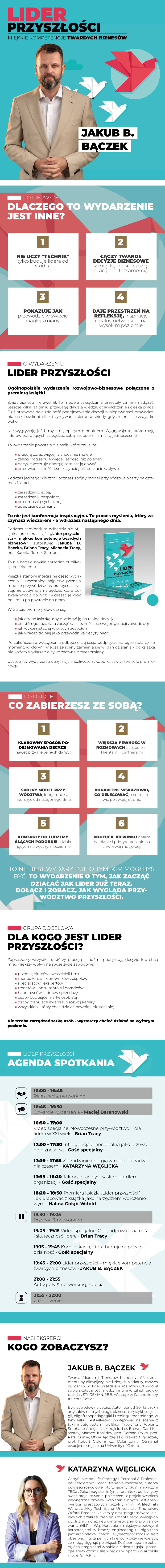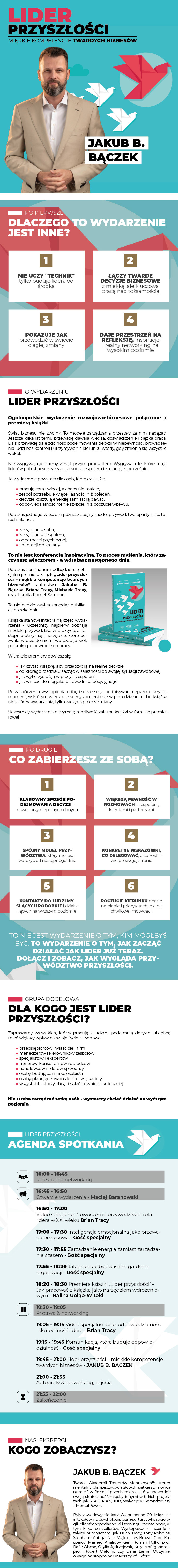 Pełny dostęp do całego szkolenia "LIDER BEZ OGRANICZEŃ". 🎒 Pakiet konferencyjny na miejscu: ✔️ Identyfikator uczestnika ✔️ Smycz konferencyjna ✔️ Notes konferencyjny do zapisywania kluczowych wniosków i decyzji ✔️ Długopis ✔️ 30% rabatu na szkolenia Brian Tracy Polska Rabat do wykorzystania na wybrane szkolenia i programy rozwojowe. ✔️ Dostęp online do nagranego video seminarium "Sztuka skutecznej komunikacji" - Brian Tracy Wartość rynkowa: ok. 1 000 zł Dostęp dla uczestników wydarzenia w cenie biletu. 👉 Już same bonusy edukacyjne przewyższają wartość biletu.