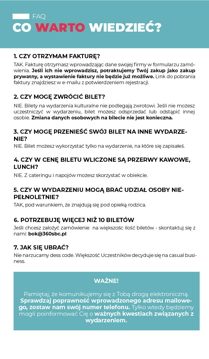 UWAGA: w cenę biletu nie są wliczone przerwy kawowe, catering