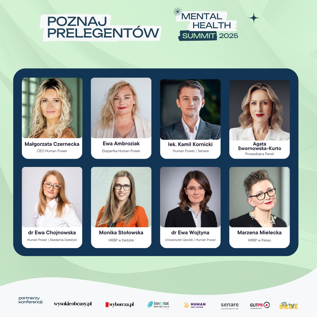 🧠 Bo spotkasz ekspertów z różnych perspektyw.Psycholożki, psychiatra, lekarz, HR-owcy i liderzy z dużych firm - wszyscy w jednym miejscu, by pokazać pełny obraz wyzwań i dobrych praktyk.