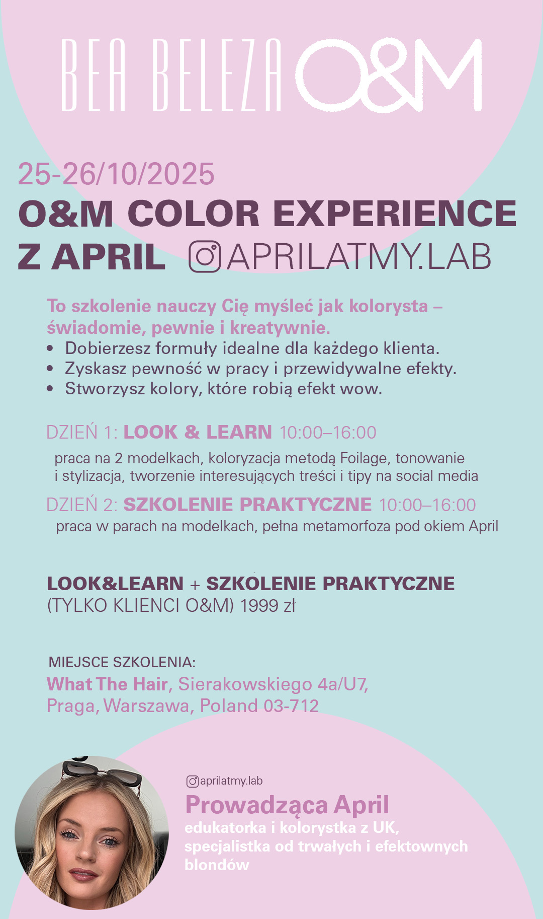 Wejdź na wyższy poziom koloryzacji razem z marką O&M (Original&Mineral) i światowej klasy edukatorką - April (@aprilatmy.lab). To szkolenie to nie tylko technika, ale zupełnie nowe spojrzenie na koloryzację.