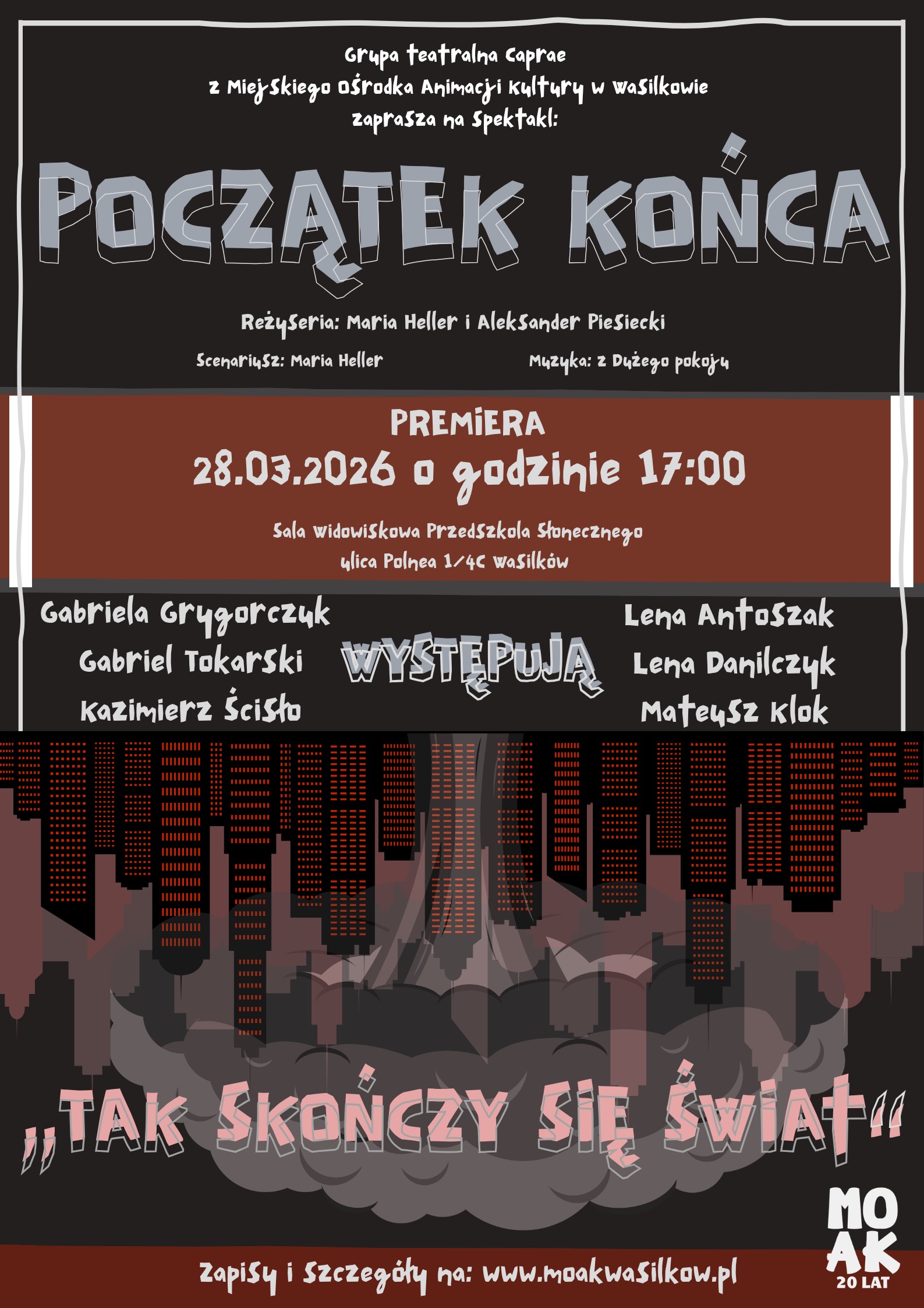 Premiera spektaklu "Początek Końca" - Grupa teatralna "Caprae" z MOAK Wasilków - 28.03.2026 godz. 17:00