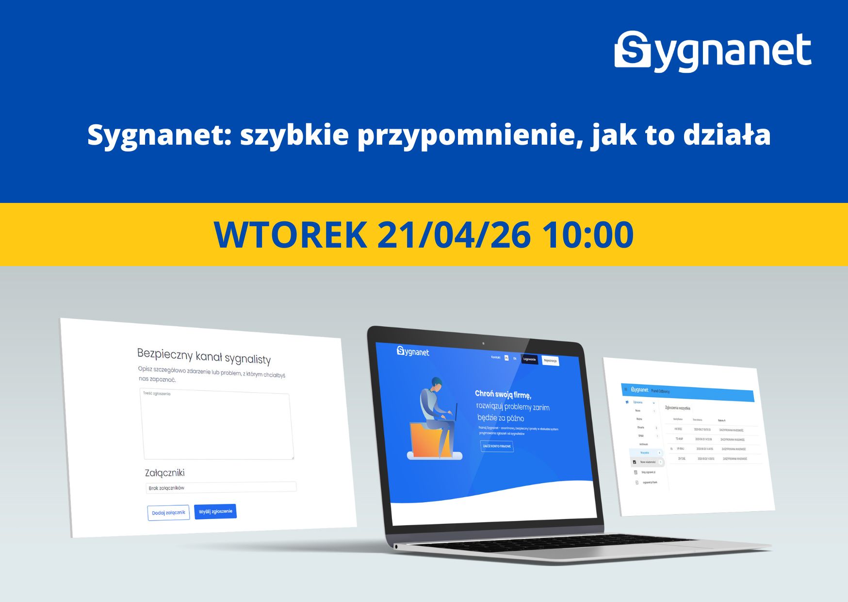 馃搶 Zapraszam na kr贸tki webinar przypominaj膮cy najwa偶niejsze funkcjonalno艣ci systemu Sygnanet! Podczas spotkania opowiem, jak sprawnie korzysta膰 z platformy - od przyjmowania zg艂osze艅 po ich obs艂ug臋 i komunikacj臋 z sygnalist膮. Webinar b臋dzie szczeg贸lnie przydatny dla os贸b, kt贸re ju偶 korzystaj膮 z systemu, ale chc膮 uporz膮dkowa膰 wiedz臋 lub upewni膰 si臋, 偶e wykorzystuj膮 jego mo偶liwo艣ci w pe艂ni.
