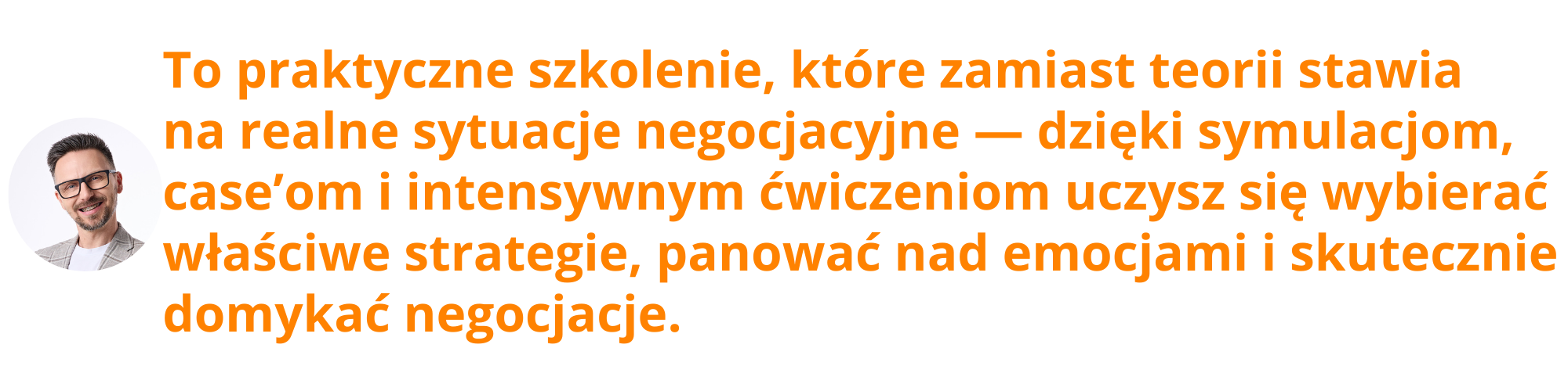 To szkolenie jest dla Ciebie, jeśli jesteś handlowcem, Key Account Managerem, menedżerem sprzedaży lub właścicielem firmy i na co dzień prowadzisz negocjacje z klientami, partnerami lub kontrahentami — a jednocześnie masz poczucie, że: