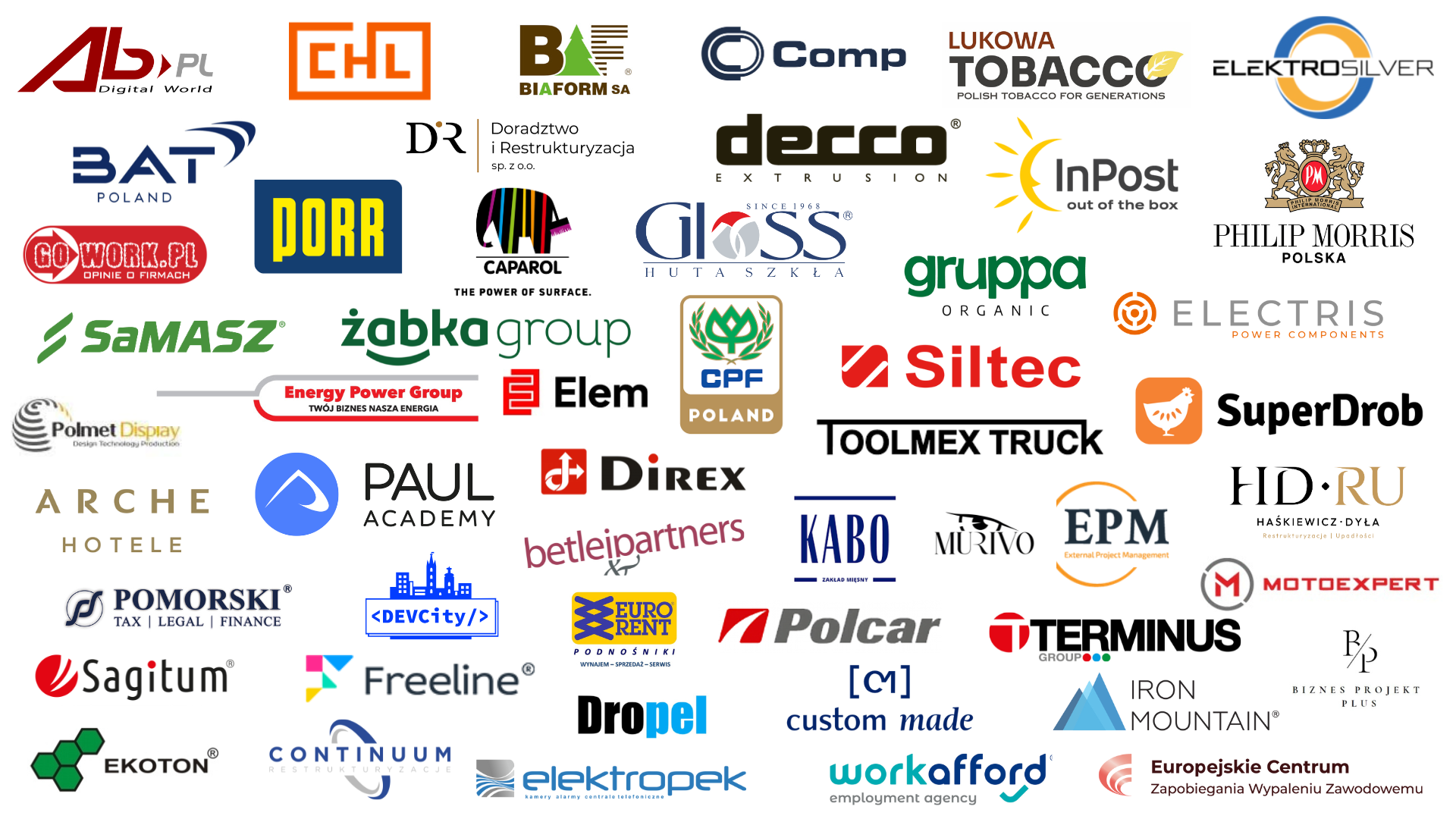 Logotypy części firm członkowskich PTG: